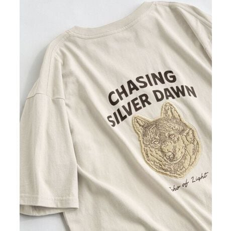 16/-天竺を使用した、サガラ刺繍が目を惹くアニマルプリントTシャツ。