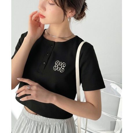 胸元の刺繍とヘンリーネックが可愛い半袖カットソー♪