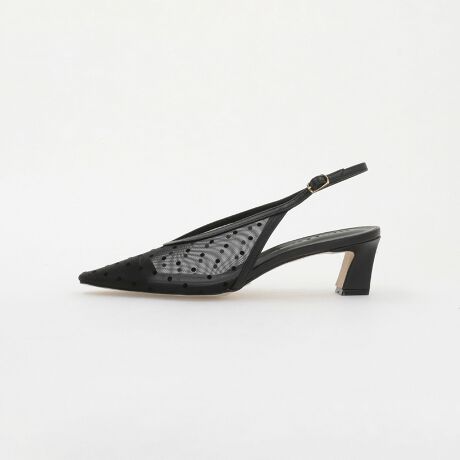 透け感のあるチュール素材で適度なヌーディーさが魅力のパンプス。