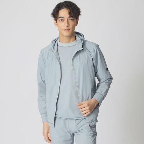 「_RTM TECストレッチタフタ」を使用したフーディー。