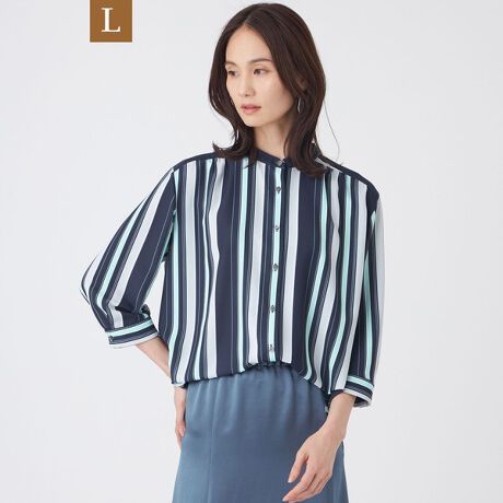 【L】【ウォッシャブル】マルチストライププリントブラウス