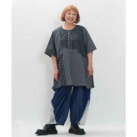 3種類の幾何学柄をMIXして仕立てた、遊び心のあるチュニック。