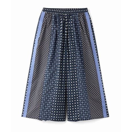 3種類の幾何学柄をミックスして仕立てた、存在感のあるワイドパンツ。