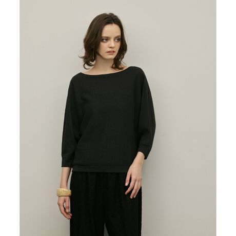 天竺編みの横使いを使用したドルマンニットトップス。非常に軽く、夏でも涼しく着ていただけるペーパー混素材を使用。ゆったりとしたリラックス感のあるシルエットに仕上げ、こなれた大人のニュアンススタイルを楽しめる1枚に仕上げました。定番として重宝するブラック・グレーと、色鮮やかな発色が目を引くオレンジを加えた3色をご用意。飽きのこないシンプルな表情と優しいシルエットに心惹かれる、ワードローブの定番になる事間違いなしの一枚です。