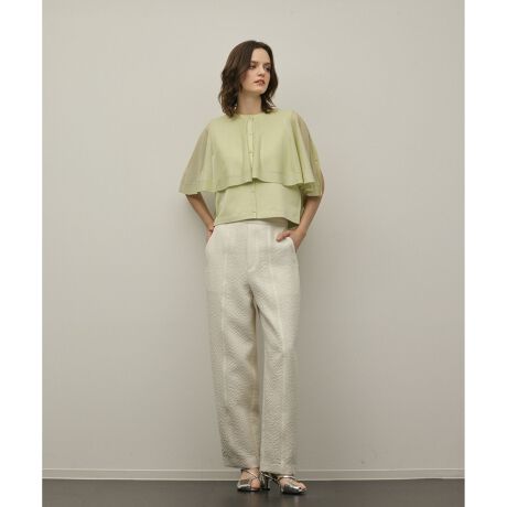 涼やかなシアー素材でお作りした、シーズナブルな2WAYニットカーディガン。腕の動きに合わせて優しく揺らぐ柔らかな表情や、シンプルながらもほんのり個性の効いた佇まいがポイント。さりげなく肌が透ける上品で美しいデザインが、より一層モダンな女性らしさを演出します。ブラックとホワイトのベーシックカラーに加え、春夏らしい優しいライトグリーンの3色をご用意しました。新定番トップスになること間違いなしの1枚です。