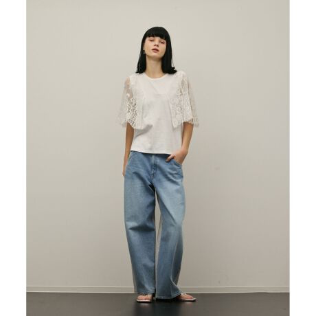 装いをフェミニンに印象付けるレースコンビトップス。超長綿をブレンドし、紡績により毛羽の少ない表情や光沢感、程よいハリ感を兼ね揃えた上質なスムース素材を使用。袖に繊細で美しいリバーレースを組み合わせた華やかなデザインが、女性らしい柔らかさと装いに映える華やかなニュアンスをプラスします。 レースの柄をいかし、スカラップで処理した美しい仕様にもこだわりました。肌が覗く涼やかな透け感がシーズンらしく、とっても軽やか。夏の定番の一着になること間違いなしのアイテムです。