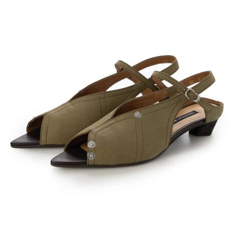 デニムをイメージしたリベットとステッチがアクセントのオープントゥサンダル。