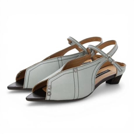デニムをイメージしたリベットとステッチがアクセントのオープントゥサンダル。