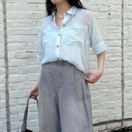 ・夏シーズンにぴったりな軽やかなシアー素材の半袖シャツ