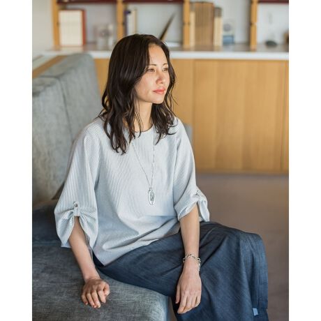 サッカー素材なので表情感があり肌離れも良くきれいなシルエットを保ってくれる、春夏らしいブラウスになっています。