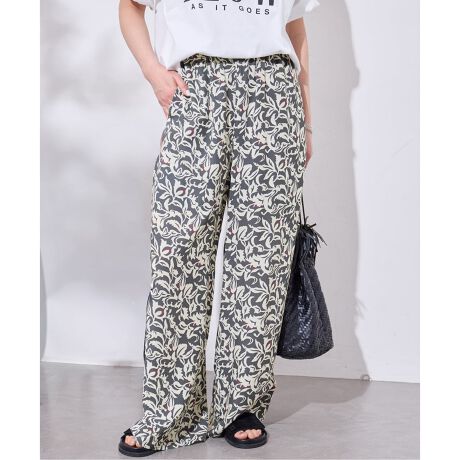 落ち感のあるレーヨン素材にオリジナル柄をプリントしたパンツ。