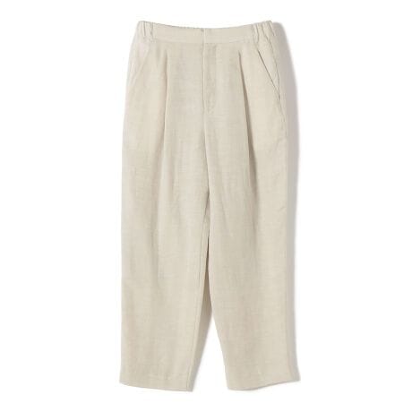 麻とテンセルをブレンドした生地で落ち感とマットな光沢感がカジュアルながらもきれいめな印象。