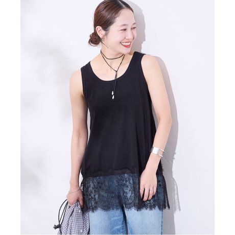 好評いただいているレースヘムクルーネックシアーロングTのタンクトップバージョン。
