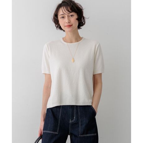 可愛らしいループ素材の表情を生かしたシンプルかつシックな大人のニットTシャツです。ボディラインを拾いすぎない絶妙なサイジングに仕上げており肌離れが良く清涼感も抜群な一枚です。デニムやリネンなどのナチュラルな素材と合わせたカジュアルなスタイリングはもちろんサテンスカートなど光沢のあるボトムスと合わせた異素材ミックスのコーディネートもおすすめ。シンプルながらも素材感で差をつけることができデイリーからちょっとしたお出かけまで幅広いシーンで活躍します。カラーは清潔感のあるホワイト(#001)、落ち着いたトーンのグレー(#004)、温かみのあるブラウン(#030)の3色展開です。