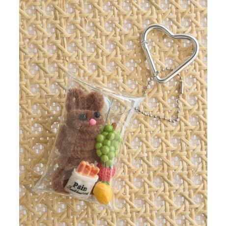 透明感のあるケースの中に、ぬいぐるみやフルーツモチーフをぎゅっと詰め込んだ遊び心あふれるデザインです。ひとつ取り入れるだけで、バッグやポーチにさりげない華やかさをプラスしてくれます。ハート型のカラビナがアクセントになり、着脱しやすく使い勝手も良いのが嬉しいポイントです。軽やかなサイズ感で持ち運びやすく、日常使いはもちろんギフトにもおすすめです。大人でも取り入れやすい可愛さで、シンプルなコーディネートのワンポイントとして活躍します。