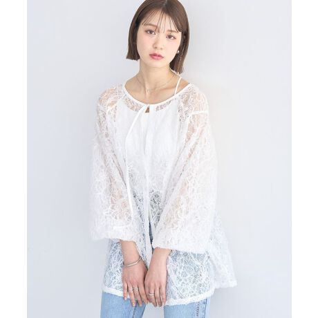 繊細なフラワーレースが上品な華やかさを演出する、やさしい雰囲気のブラウスです。軽やかな透け感のあるレース素材がコーディネートに抜け感を与え、シンプルな装いでも女性らしい印象を引き立ててくれます。ふんわりと広がるバルーンスリーブは腕周りをやさしくカバーしながら、柔らかく立体感のあるシルエットを作ります。胸元にはタックデザインを取り入れ、程よいゆとりと動きのある表情をプラスしています。ネック部分の紐はさりげないアクセントになり、結び方次第で印象のアレンジも楽しめます。デニムやパンツと合わせてカジュアルに、スカートと合わせればきれいめスタイルにも馴染みます。日常のお出かけから特別なシーンまで幅広く活躍する一着です。