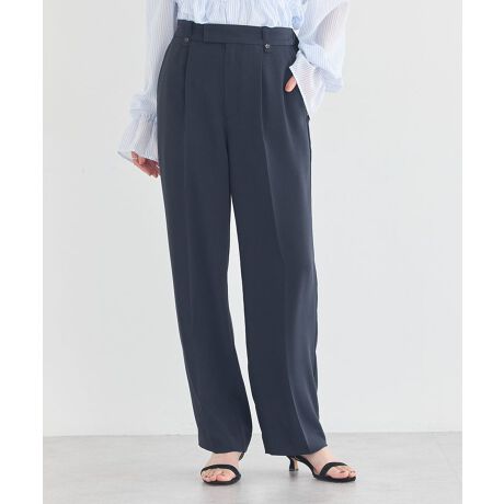 すっきりとしたストレートラインが魅力のパンツは、はくだけで上品な印象を演出してくれます。程よくゆとりのあるシルエットで脚のラインを拾いにくく、自然に体型カバーができるのも嬉しいポイントです。フロントはきちんと感のあるデザインながら、後ろはゴム仕様で快適なはき心地を実現しています。オンオフ問わず使いやすく、ブラウスやニット、カットソーなどさまざまなトップスと相性良く着こなせます。シンプルだからこそ着回し力が高く、デイリーからお仕事シーンまで幅広く活躍する一本です。