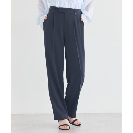 すっきりとしたストレートラインが魅力のパンツは、はくだけで上品な印象を演出してくれます。程よくゆとりのあるシルエットで脚のラインを拾いにくく、自然に体型カバーができるのも嬉しいポイントです。フロントはきちんと感のあるデザインながら、後ろはゴム仕様で快適なはき心地を実現しています。オンオフ問わず使いやすく、ブラウスやニット、カットソーなどさまざまなトップスと相性良く着こなせます。シンプルだからこそ着回し力が高く、デイリーからお仕事シーンまで幅広く活躍する一本です。