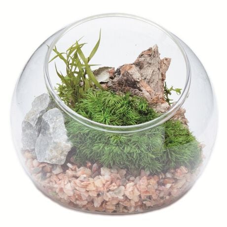 お手入れ不要の苔テラリウム「苔プリ」。本物の苔(国産)に特殊な保存加工(プリザーブド加工)を施して、自然な風合いに色染めした商品です。お手軽なインテリアとして癒しの空間を長くお楽しみいただけます。ご注意:プリザーブド加工品のため、劣化・退色・変質の原因となる霧吹きや水やりは絶対にしないでください。手で触れるとグリーン色がつく場合がありますが、石鹸で洗い落としてください。苔は自然物の加工品となりますので、形状・ボリューム感・色調・風合い等の個体差がございます。また採取場所により他の苔が若干混じり合う場合もあります。苔には、土・木片・枯葉・小石・埃等の付着・混入がございます。染料が表面から滲む場合があります。衣類・家具・壁紙等に色移りする恐れがありますので、ご使用の際には充分ご注意下さい。自然物の加工品となりますので、苔本来のにおいが若干します。使用している石、ウッドチップ、砂 利、流木は自然物につき個体差があります。