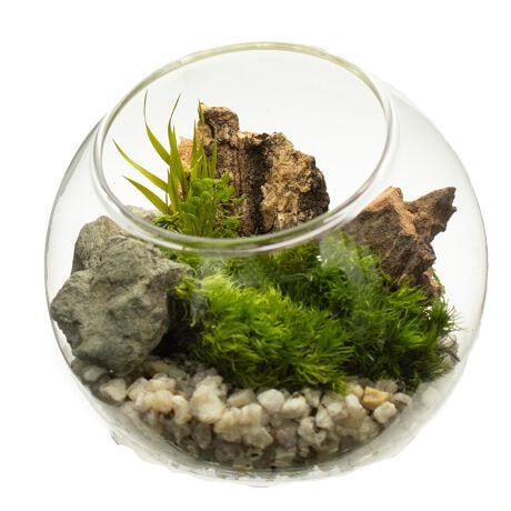お手入れ不要の苔テラリウム「苔プリ」。本物の苔(国産)に特殊な保存加工(プリザーブド加工)を施して、自然な風合いに色染めした商品です。お手軽なインテリアとして癒しの空間を長くお楽しみいただけます。ご注意:プリザーブド加工品のため、劣化・退色・変質の原因となる霧吹きや水やりは絶対にしないでください。手で触れるとグリーン色がつく場合がありますが、石鹸で洗い落としてください。苔は自然物の加工品となりますので、形状・ボリューム感・色調・風合い等の個体差がございます。また採取場所により他の苔が若干混じり合う場合もあります。苔には、土・木片・枯葉・小石・埃等の付着・混入がございます。染料が表面から滲む場合があります。衣類・家具・壁紙等に色移りする恐れがありますので、ご使用の際には充分ご注意下さい。自然物の加工品となりますので、苔本来のにおいが若干します。使用している石、ウッドチップ、砂 利、流木は自然物につき個体差があります。