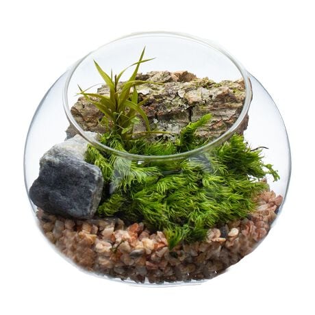 お手入れ不要の苔テラリウム「苔プリ」。本物の苔(国産)に特殊な保存加工(プリザーブド加工)を施して、自然な風合いに色染めした商品です。お手軽なインテリアとして癒しの空間を長くお楽しみいただけます。ご注意:プリザーブド加工品のため、劣化・退色・変質の原因となる霧吹きや水やりは絶対にしないでください。手で触れるとグリーン色がつく場合がありますが、石鹸で洗い落としてください。苔は自然物の加工品となりますので、形状・ボリューム感・色調・風合い等の個体差がございます。また採取場所により他の苔が若干混じり合う場合もあります。苔には、土・木片・枯葉・小石・埃等の付着・混入がございます。染料が表面から滲む場合があります。衣類・家具・壁紙等に色移りする恐れがありますので、ご使用の際には充分ご注意下さい。自然物の加工品となりますので、苔本来のにおいが若干します。使用している石、ウッドチップ、砂 利、流木は自然物につき個体差があります。