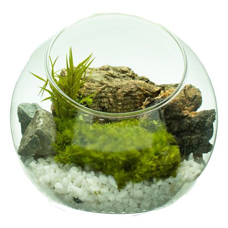 お手入れ不要の苔テラリウム「苔プリ」。本物の苔(国産)に特殊な保存加工(プリザーブド加工)を施して、自然な風合いに色染めした商品です。お手軽なインテリアとして癒しの空間を長くお楽しみいただけます。ご注意:プリザーブド加工品のため、劣化・退色・変質の原因となる霧吹きや水やりは絶対にしないでください。手で触れるとグリーン色がつく場合がありますが、石鹸で洗い落としてください。苔は自然物の加工品となりますので、形状・ボリューム感・色調・風合い等の個体差がございます。また採取場所により他の苔が若干混じり合う場合もあります。苔には、土・木片・枯葉・小石・埃等の付着・混入がございます。染料が表面から滲む場合があります。衣類・家具・壁紙等に色移りする恐れがありますので、ご使用の際には充分ご注意下さい。自然物の加工品となりますので、苔本来のにおいが若干します。使用している石、ウッドチップ、砂 利、流木は自然物につき個体差があります。