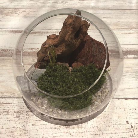 お手入れ不要の苔テラリウム「苔プリ」。本物の苔(国産)に特殊な保存加工(プリザーブド加工)を施して、自然な風合いに色染めした商品です。お手軽なインテリアとして癒しの空間を長くお楽しみいただけます。ご注意:プリザーブド加工品のため、劣化・退色・変質の原因となる霧吹きや水やりは絶対にしないでください。手で触れるとグリーン色がつく場合がありますが、石鹸で洗い落としてください。苔は自然物の加工品となりますので、形状・ボリューム感・色調・風合い等の個体差がございます。また採取場所により他の苔が若干混じり合う場合もあります。苔には、土・木片・枯葉・小石・埃等の付着・混入がございます。染料が表面から滲む場合があります。衣類・家具・壁紙等に色移りする恐れがありますので、ご使用の際には充分ご注意下さい。自然物の加工品となりますので、苔本来のにおいが若干します。使用している石、ウッドチップ、砂 利、流木は自然物につき個体差があります。
