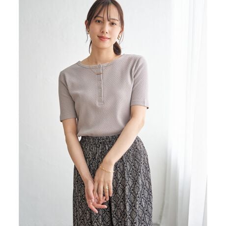 肌ばなれのいい立体感のある生地で定番のヘンリーネックを上品な雰囲気に。