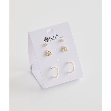 その日の気分やスタイリングに合わせて選べる、嬉しい3点セットのピアスです。上品なパール調、さりげなく輝くビジュー、程よい存在感のメタルデザインと、それぞれ異なる魅力を楽しめます。シンプルながらも洗練された印象で、カジュアルからきれいめまで幅広いコーディネートに自然となじみます。軽やかな着け心地で、長時間でもストレスなくお使いいただけます。複数持ちしているような満足感があり、日々のスタイリングに変化をつけたい方にもおすすめです。
