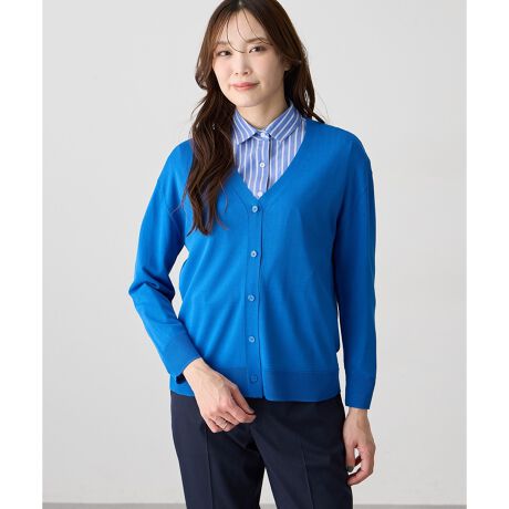 [型番:352694]ひんやり快適なVネックカーデ接触冷感とUVカット機能を備えた、暑い季節に頼れるカーディガン。触れた瞬間ひんやりと感じる素材で、さらっと羽織れる軽やかな着心地が魅力です。冷房対策として持ち歩いたり、ノースリーブの上に重ねて日差し対策にも活躍します。ボタンを留めてトップス風に着ると、すっきりとした着こなしも楽しめます。