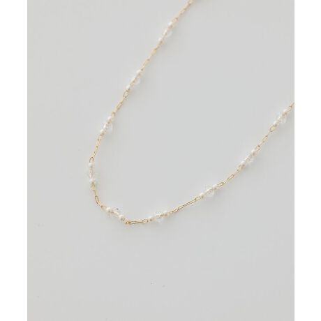 小さなビーズをミックスしたデザインが、首元にやさしい華やかさを添えてくれるネックレスです。カラーバランスが絶妙で、シンプルなコーディネートにも自然と馴染みながらアクセントとして活躍します。華奢なサイズ感で主張しすぎず、日常使いしやすいのも魅力です。軽やかな着け心地で長時間でも快適にお使いいただけます。単品でさらりと着けるのはもちろん、他のネックレスとの重ね付けも楽しめるため、スタイリングの幅が広がります。毎日の装いにさりげない可愛らしさをプラスしてくれるアイテムです。