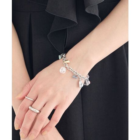 ナチュラルな風合いのストーンとメタルチャームをミックスした、表情豊かなブレスレットです。一つひとつ異なる雰囲気のパーツが絶妙に調和し、手元にこなれ感を演出してくれます。シンプルなトップスに合わせるだけで、洗練された印象に仕上がるのが嬉しいポイントです。着脱しやすい仕様で日常使いにも取り入れやすく、季節を問わず活躍します。気軽にトレンド感を取り入れたい方にもおすすめです。