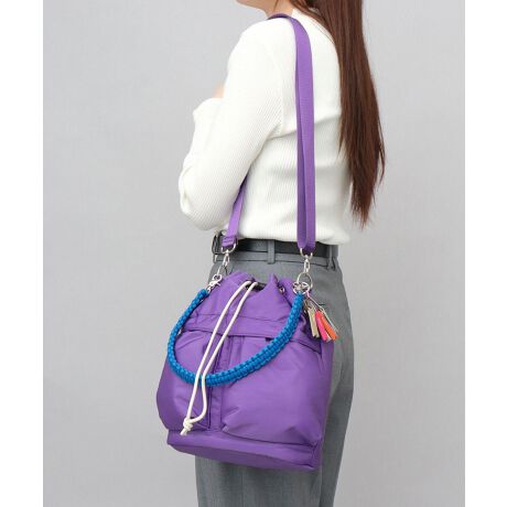 ネオンカラーのコードハンドルとショルダーベルトで、スタイリングに合わせて、斜め掛け・肩掛け・手持ちのできる仕様。不要時には取り外しができるので、片方を取り付けてすっきりと持てるのも嬉しいポイント。