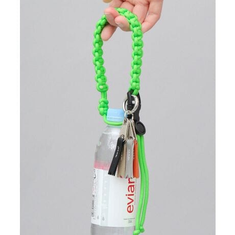 コスメチークのように 『表情を明るくする』 『生活をカラフルに彩る』 ブランド“cheek(チーク)”の、ドリンクチャーム。カラフルなパラコードを編み込んだチャームは、ペットボトルやドリンクカップを固定できるアイテム。ペットボトルは2本同時に固定できるので、両手が塞がらず便利。パッと目を惹く、POPなドリンクチャームは、不要時にはバッグチャームとして、ハンドルやショルダーに取り付けも。