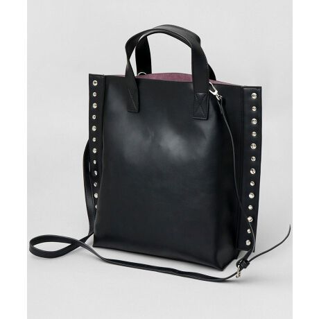 両サイドにリベットをライン打ちした、ちょっぴりハードな印象のトートバッグ。