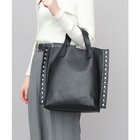 両サイドにリベットをライン打ちした、ちょっぴりハードな印象のトートバッグ。