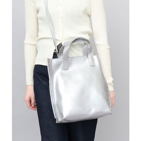 両サイドにリベットをライン打ちした、ちょっぴりハードな印象のトートバッグ。