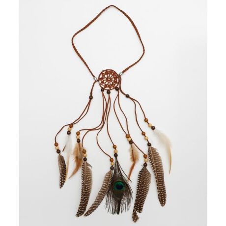 [型番:TLGZ6108-2026]フェザーを贅沢にあしらったドリームキャッチャー風ネックレス。存在感ある長めのモチーフが印象的で、胸元を華やかに飾る主役級アクセサリー。
