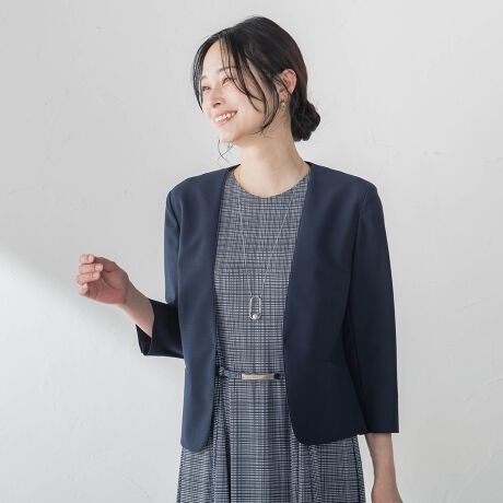 袖は軽やかな印象を与える8分丈で、夏場でも重たくならず、端境期にも活躍します。