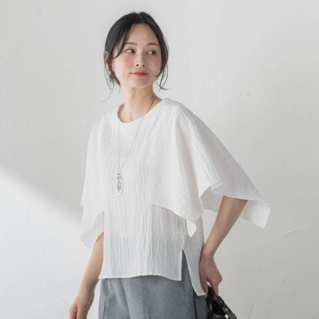 肌離れがよく、軽やかな着心地で、シンプルなボトムスと合わせるだけで洗練されたスタイリングが完成します。