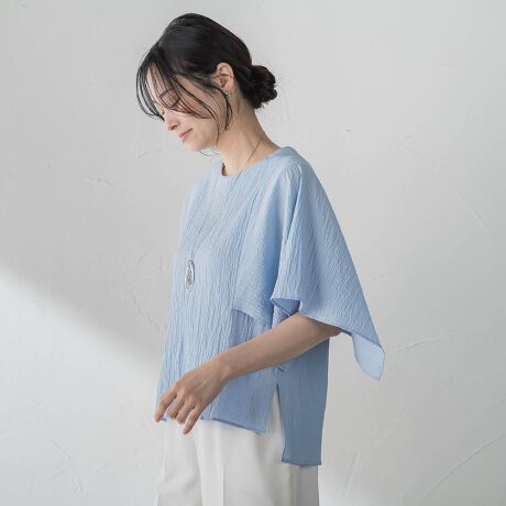 肌離れがよく、軽やかな着心地で、シンプルなボトムスと合わせるだけで洗練されたスタイリングが完成します。