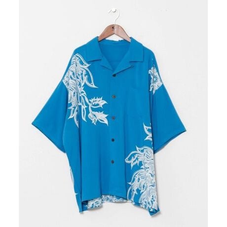 [型番:IAC-6207-2026]【Amina×VORRUK】タイのアーティストVORRUKとのコラボ。サンユウカの花と風車をモチーフにしたプリントが印象的な開襟メンズシャツ。単色の柄が落ち着いた存在感を放ち、ゆったりとしたシルエットが心地よい抜け感を生みます。柔らかなレーヨン素材で、さらりとした着心地が魅力のアイテムです。