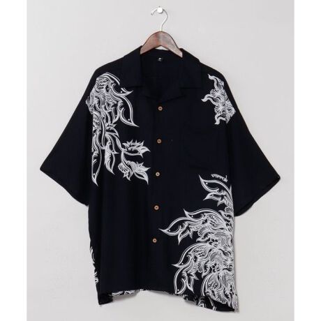 [型番:IAC-6207-2026]【Amina×VORRUK】タイのアーティストVORRUKとのコラボ。サンユウカの花と風車をモチーフにしたプリントが印象的な開襟メンズシャツ。単色の柄が落ち着いた存在感を放ち、ゆったりとしたシルエットが心地よい抜け感を生みます。柔らかなレーヨン素材で、さらりとした着心地が魅力のアイテムです。