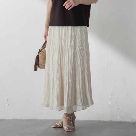 軽やかに揺れる表情が魅力の、タテジワプリーツスカート。