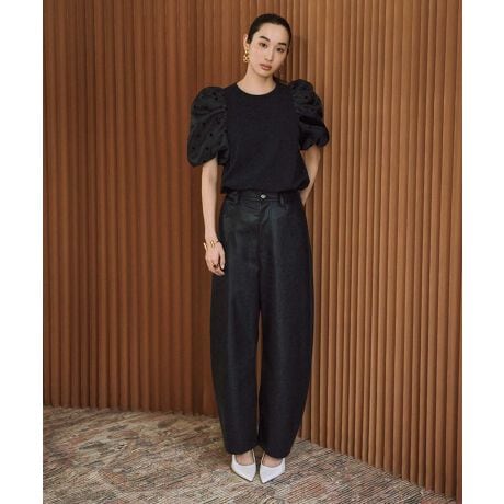 ELFRANKらしいドットフロッキーをオーガンジーにプリントしたボリュームスリーブがポイント。