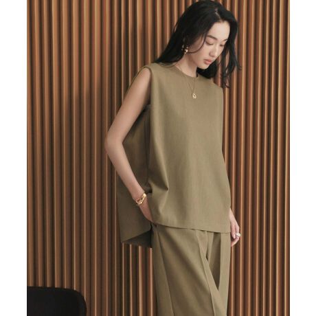 【2026SS】セットアップ対応 バックタックノースリーブスクエアシルエットブラウス