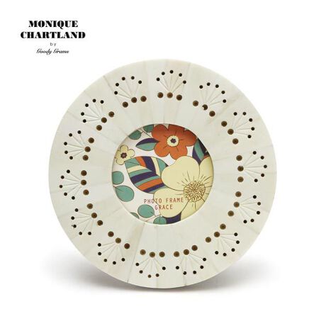 ボーンを円形に組合せ、模様を彫ったフォトフレーム「DAIVIK」。