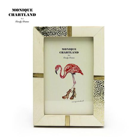レジンをベースに真鍮や金箔でアクセントを施したフォトフレーム「DARIKA」。骨董品のようなたたずまいでありますが、ゴールドを使用しているのでモダンなインテリアにも合わせやすいです。ハンドメイドで作られており、ところどころみられるゆがみや塗装の剥げが量産品にはない味を出しています。背面にはスタンドが付いていて縦置き横置き両用です。