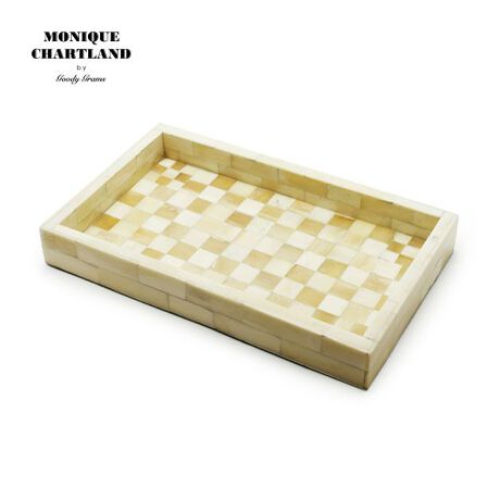 磨き上げた骨をパーツとして贅沢に敷き詰めたトレイ。平面をうまく生かして独特のパターンを生み出しています。工芸品のような手作業の風合いがよく生かされており、トレイに並べるものにこだわりたくなります。玄関に置くキートレイやピアスやリング置き場としてのアクセサリートレーなどにもおすすめです。