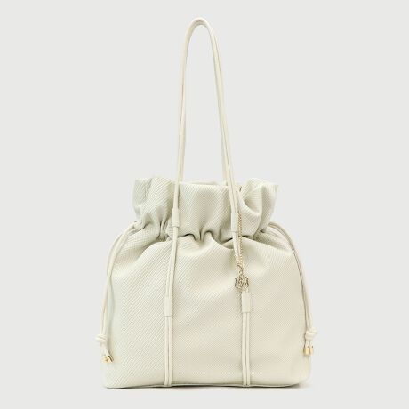 やわらかな質感と表情のある素材が魅力のドローストリングバッグ。